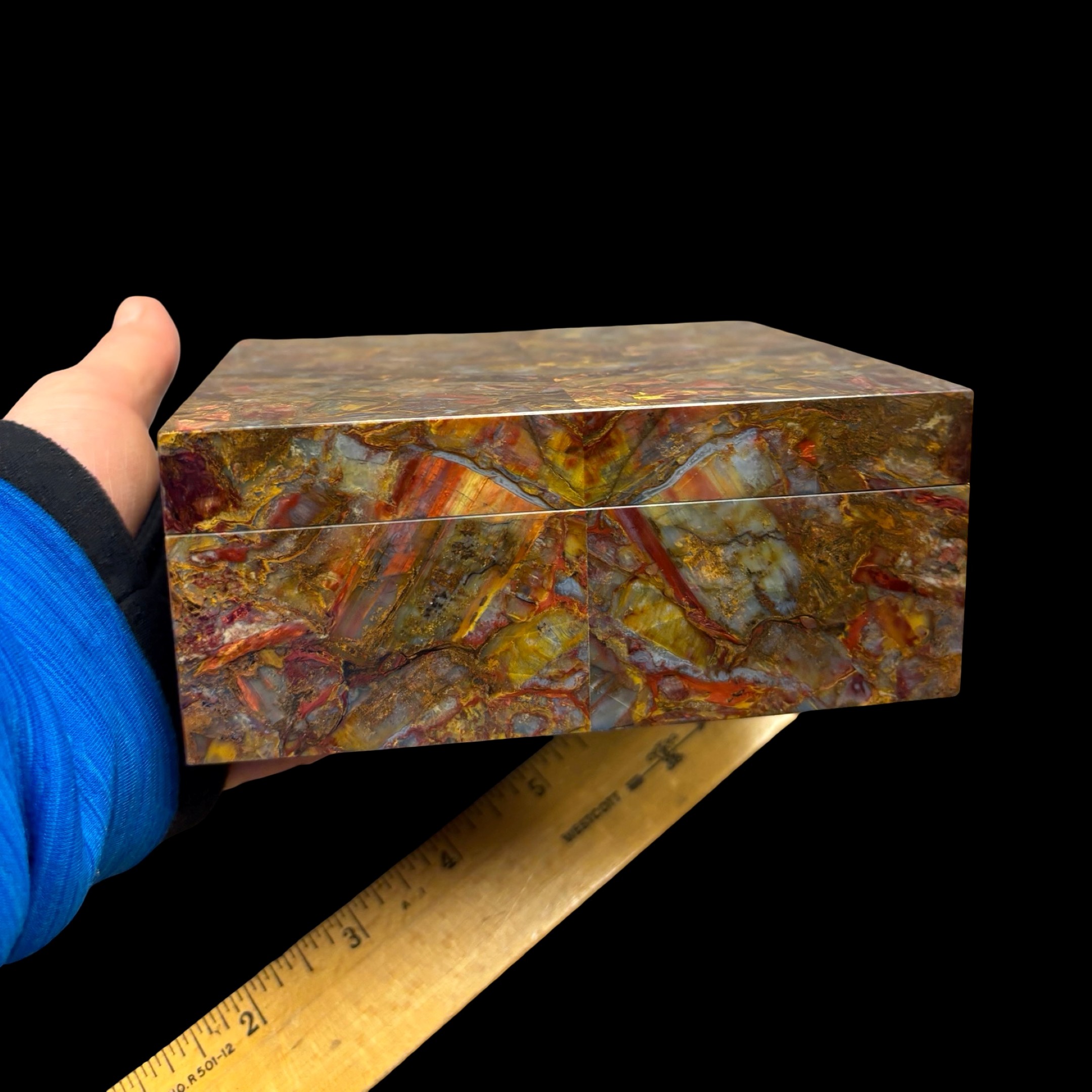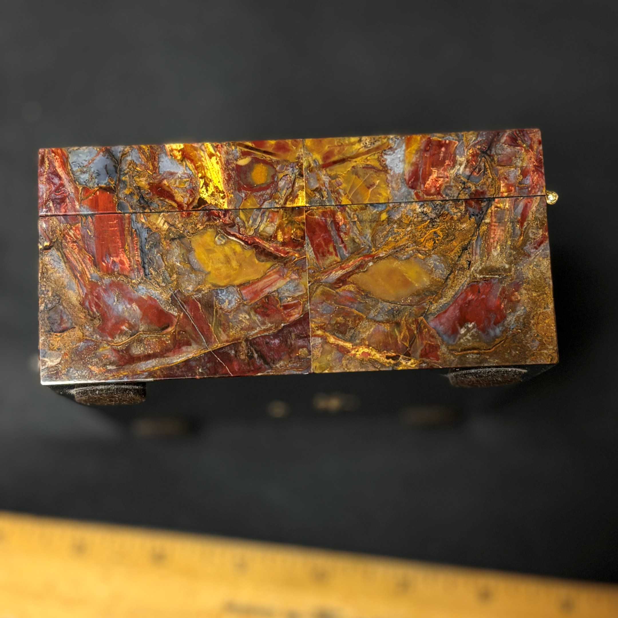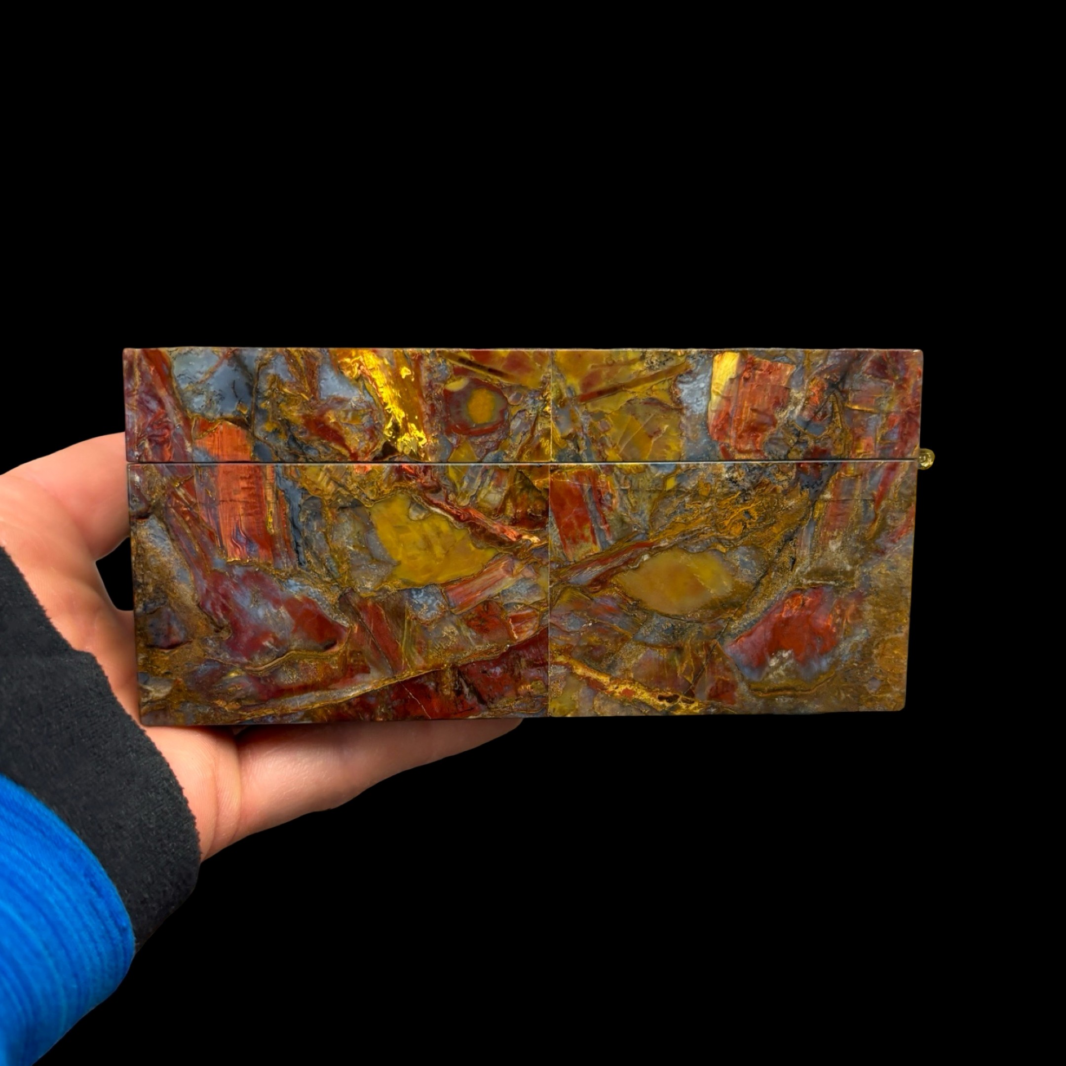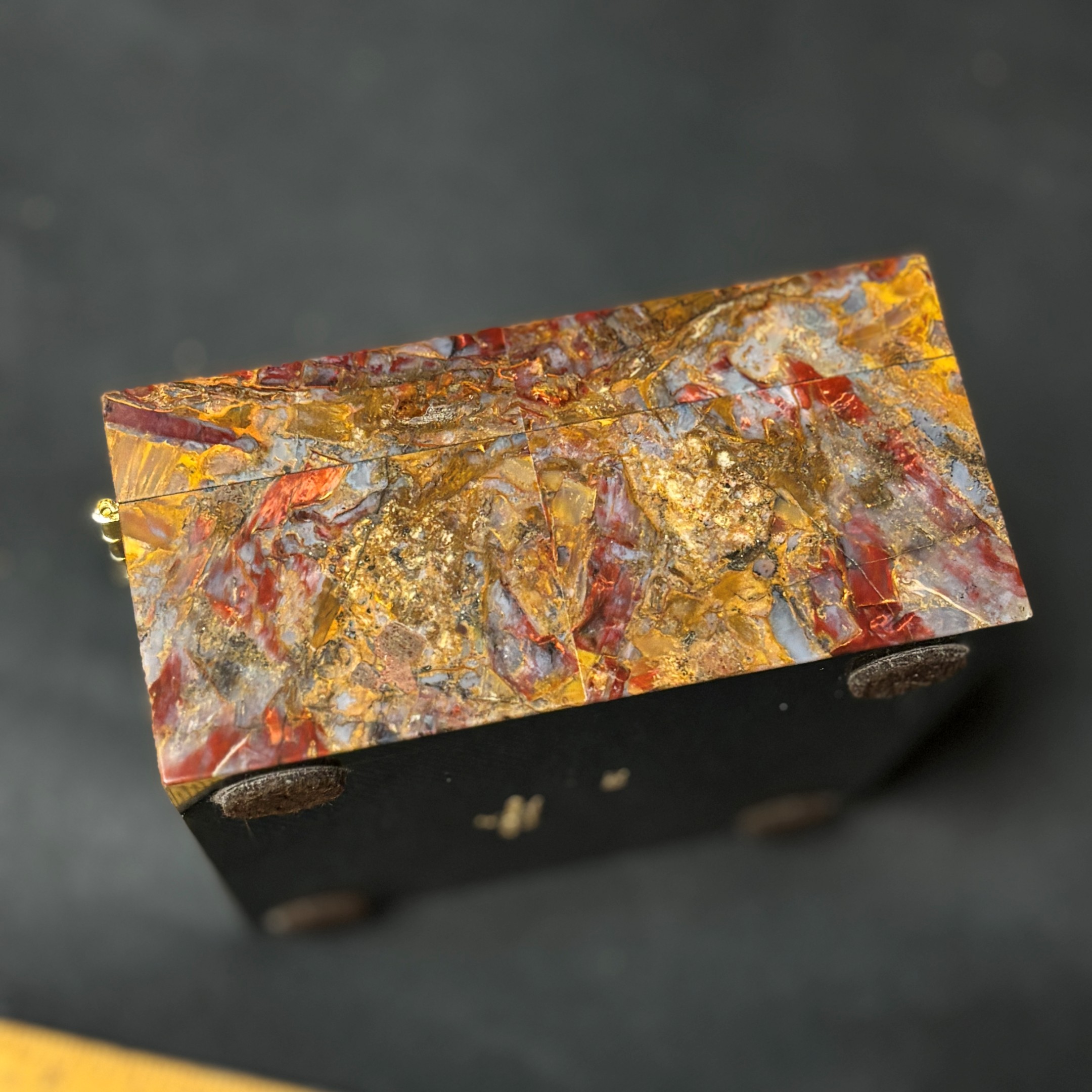 Spectacular Chinese Pietersite and Basalt hinged box with wood insert, expertly crafted by Konstantin Libman of Gems Art Studio.