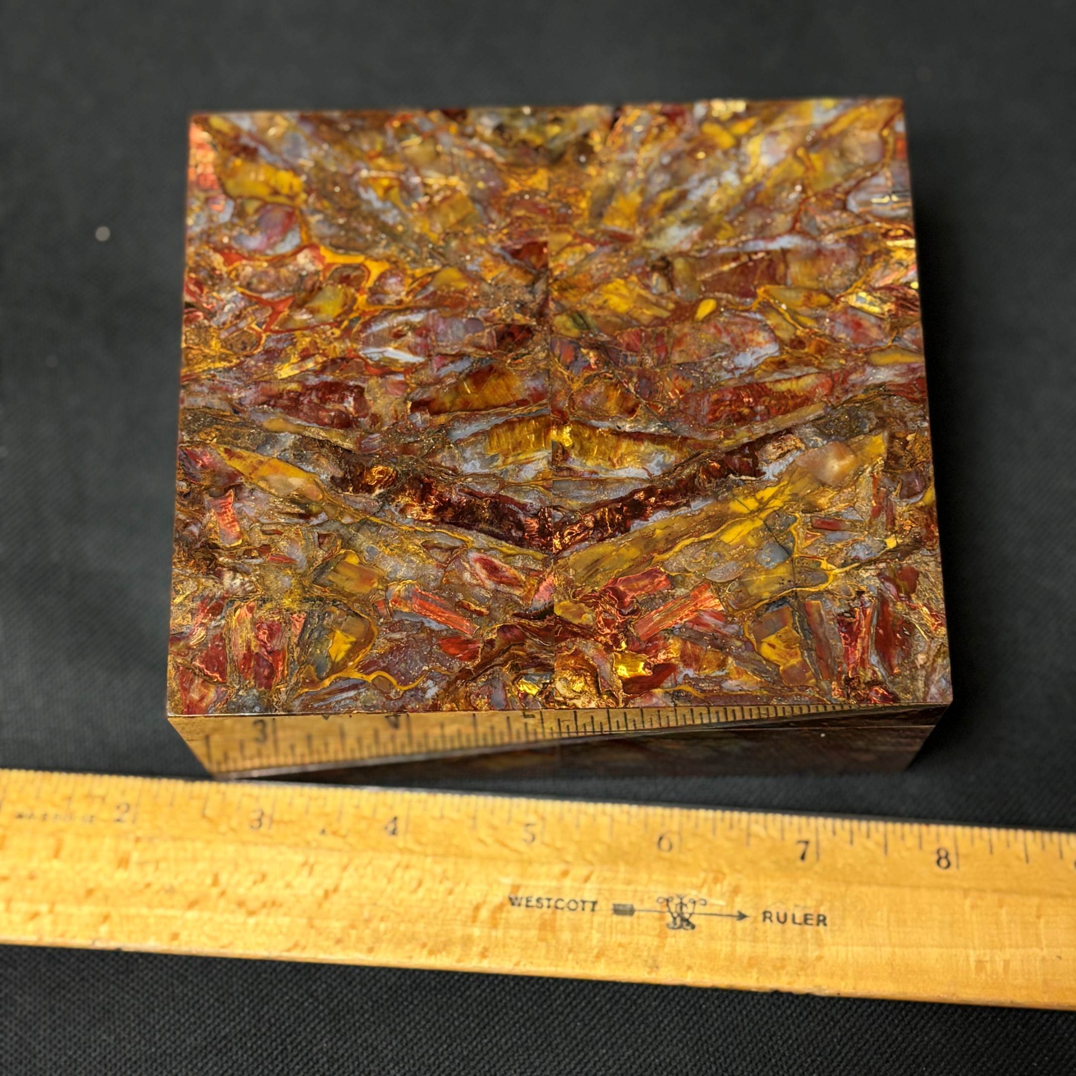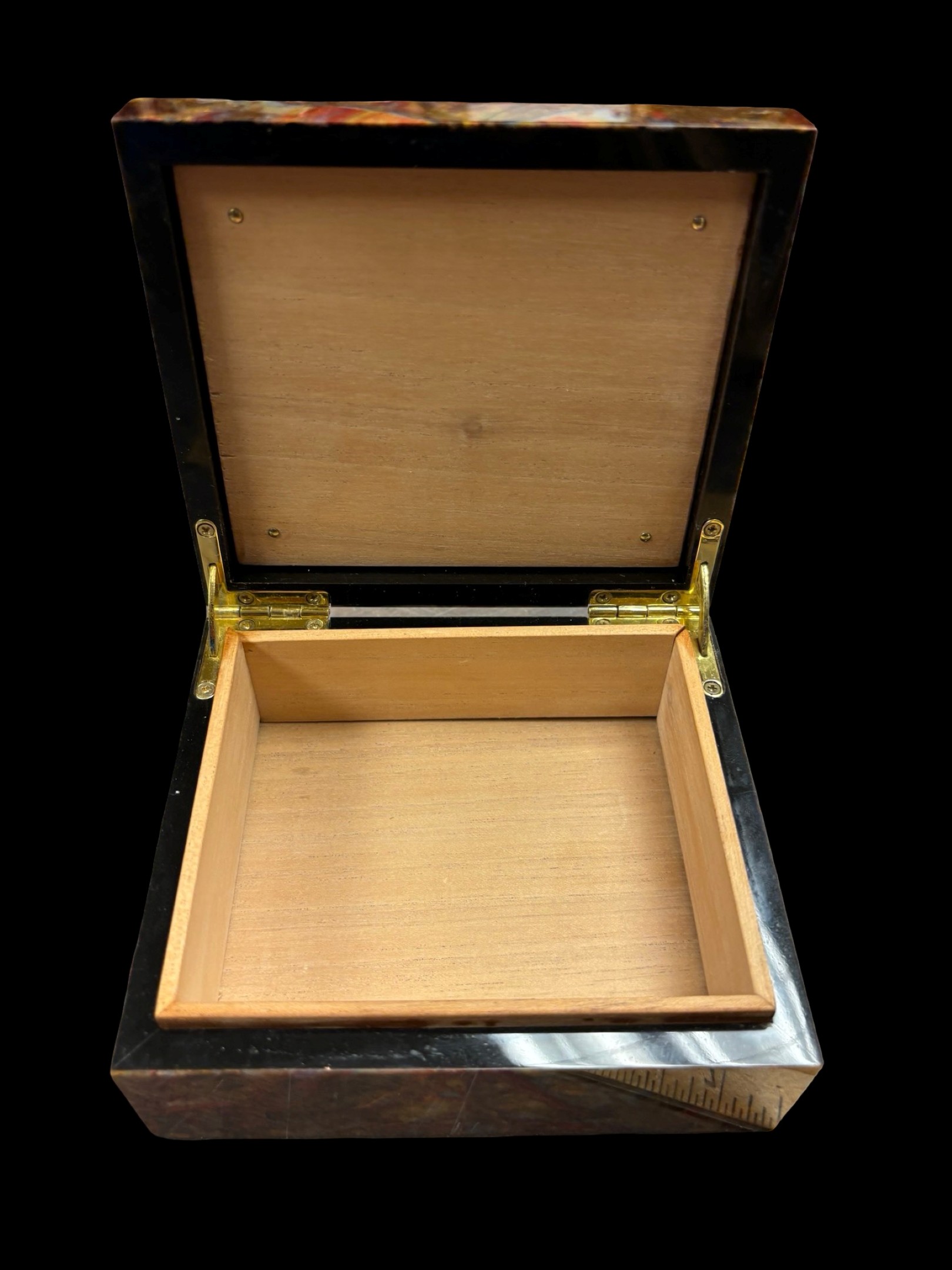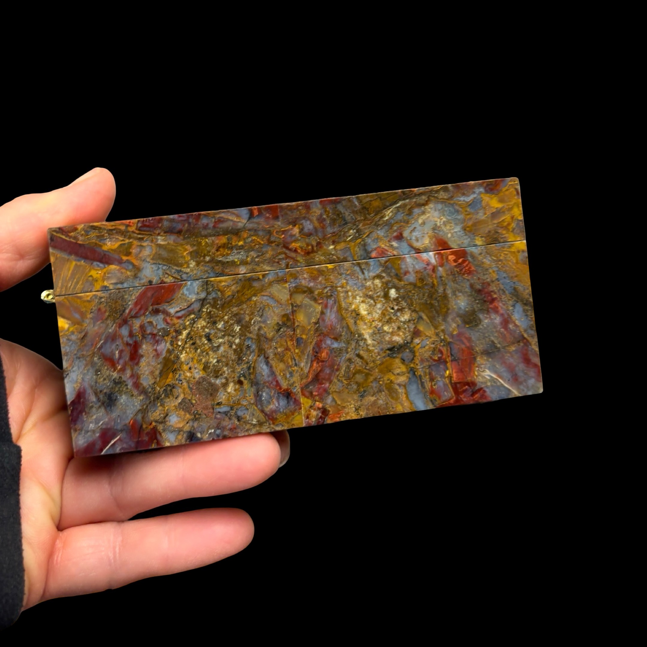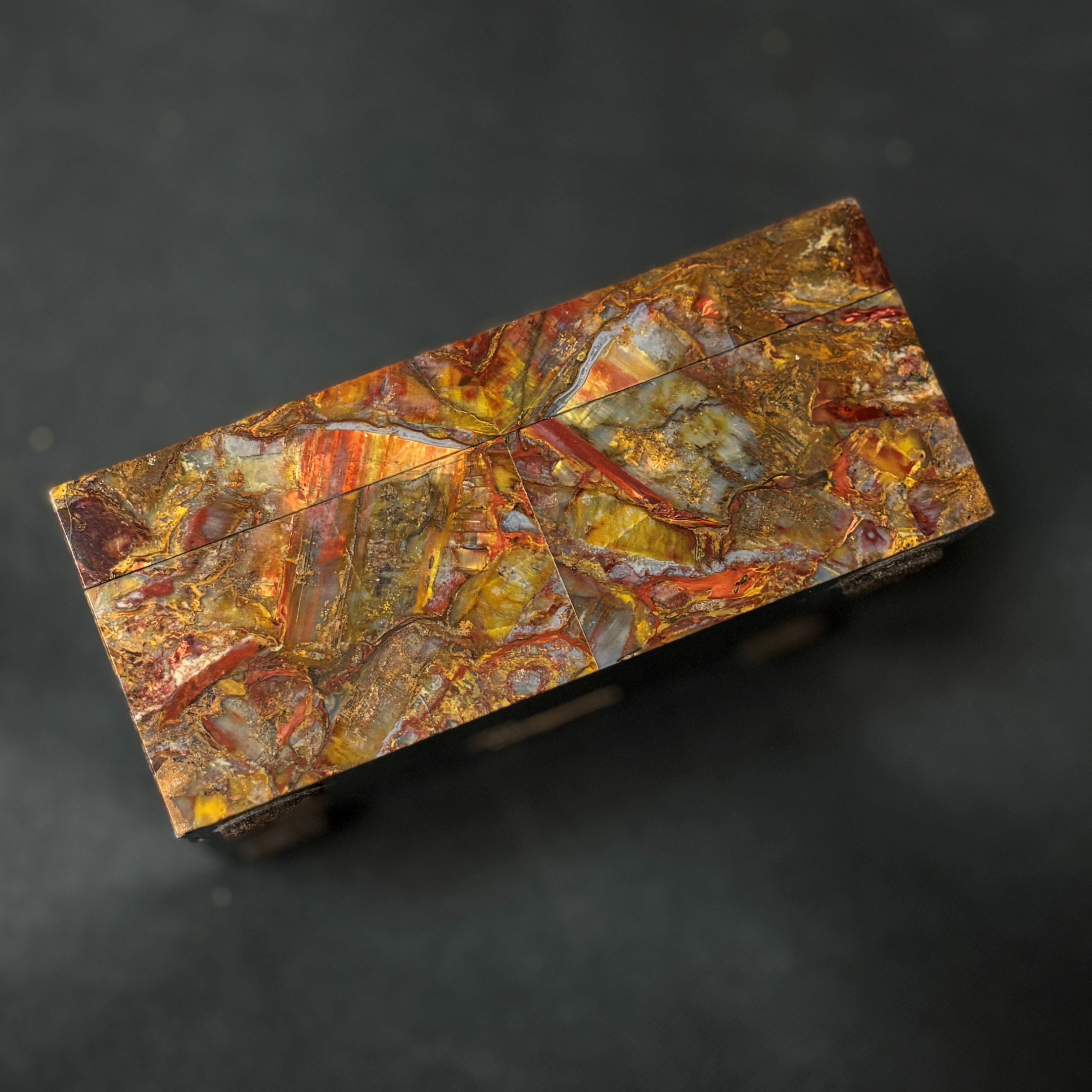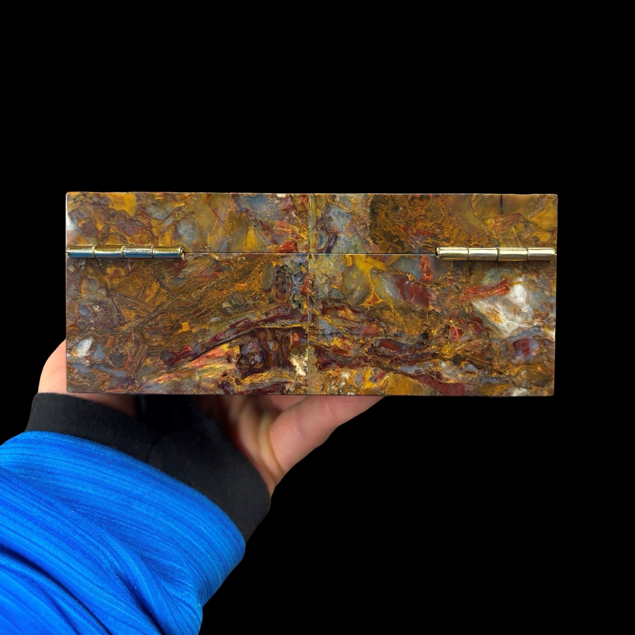 Spectacular Chinese Pietersite and Basalt hinged box with wood insert, expertly crafted by Konstantin Libman of Gems Art Studio.