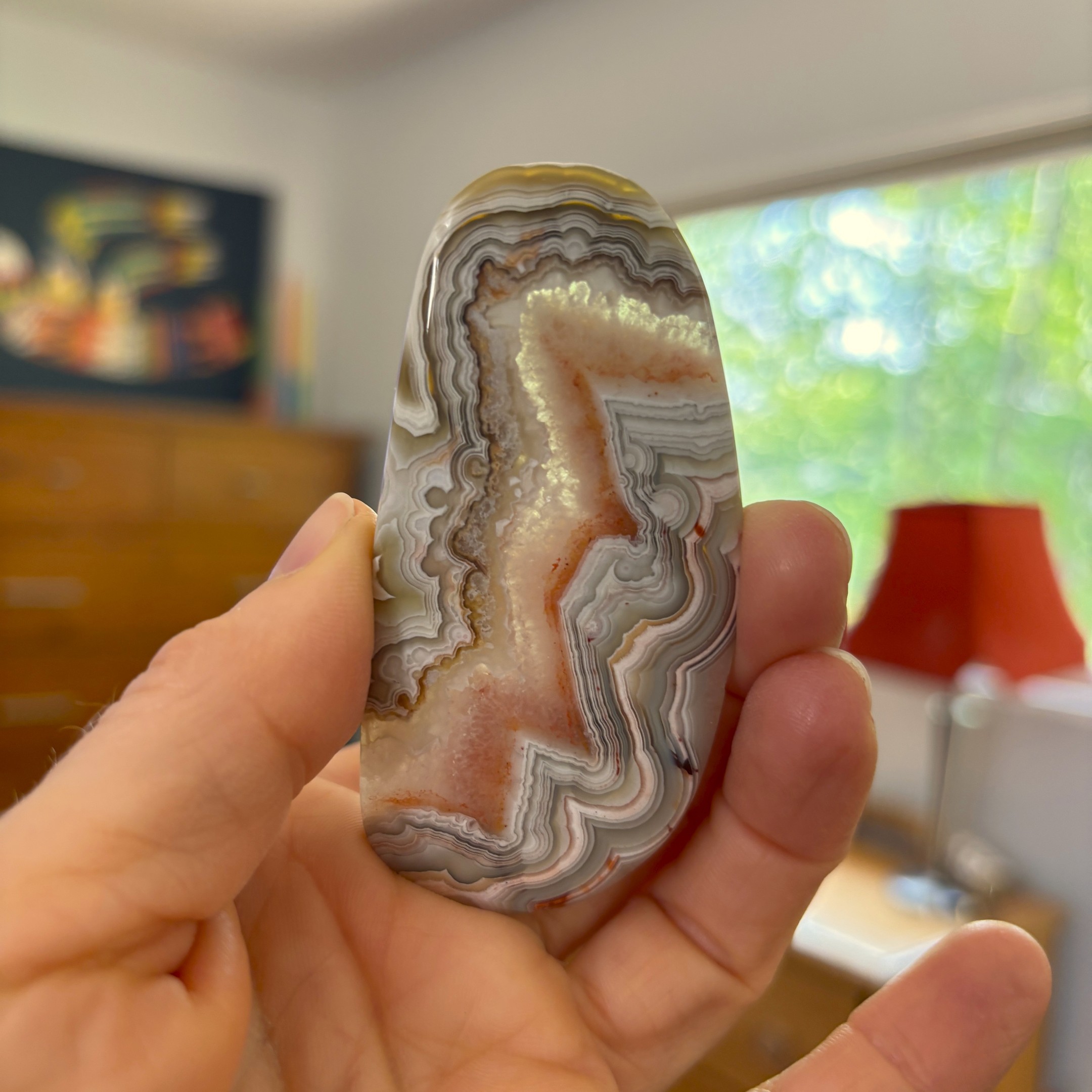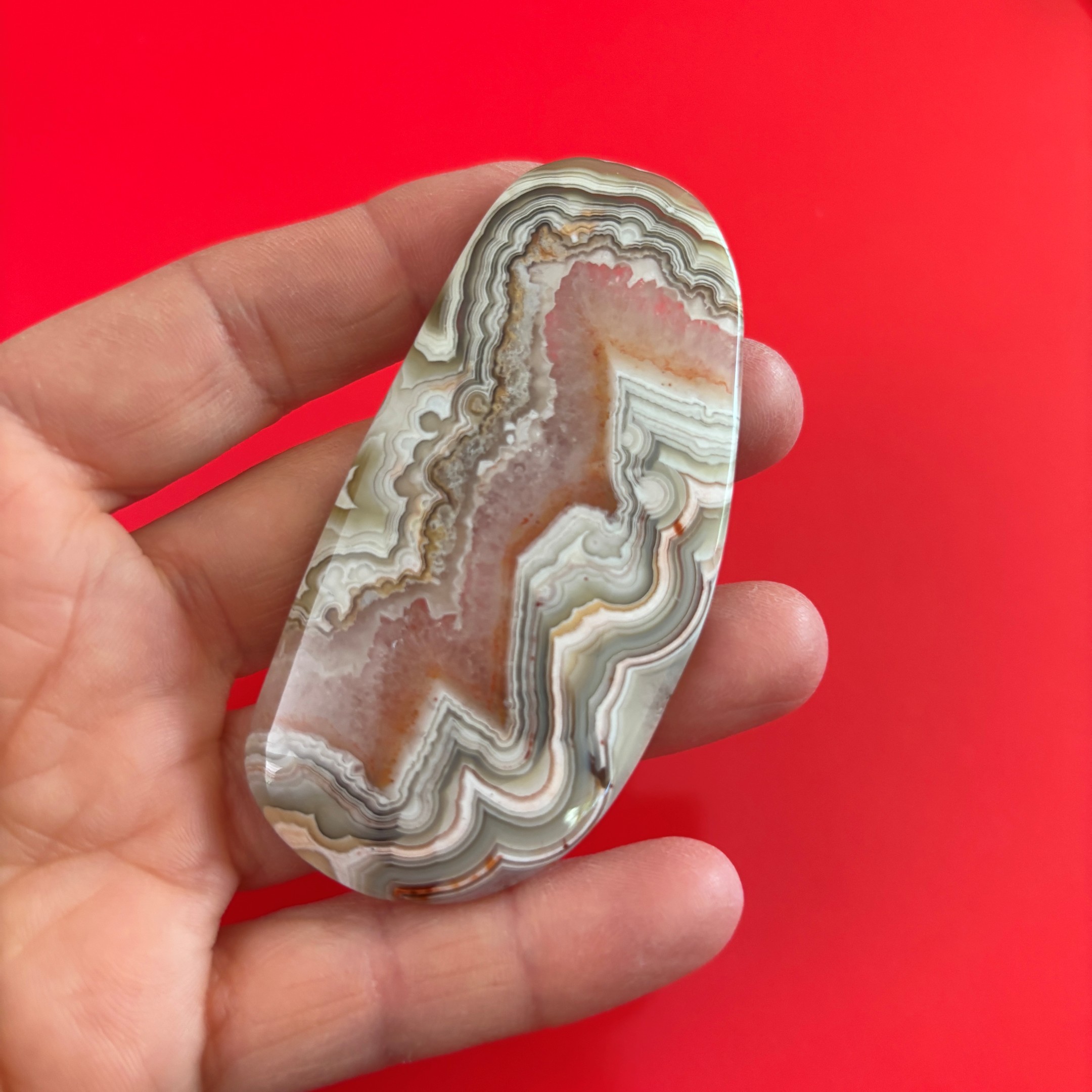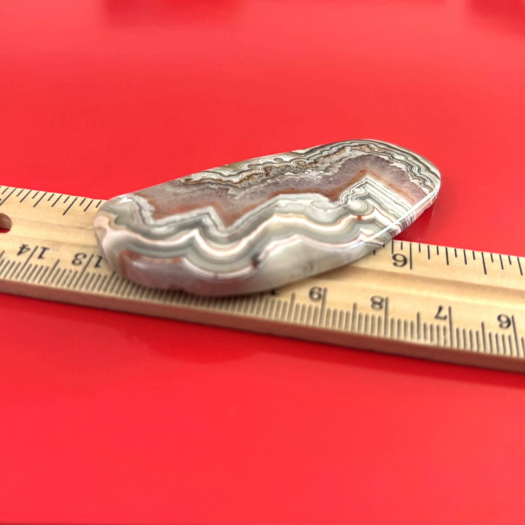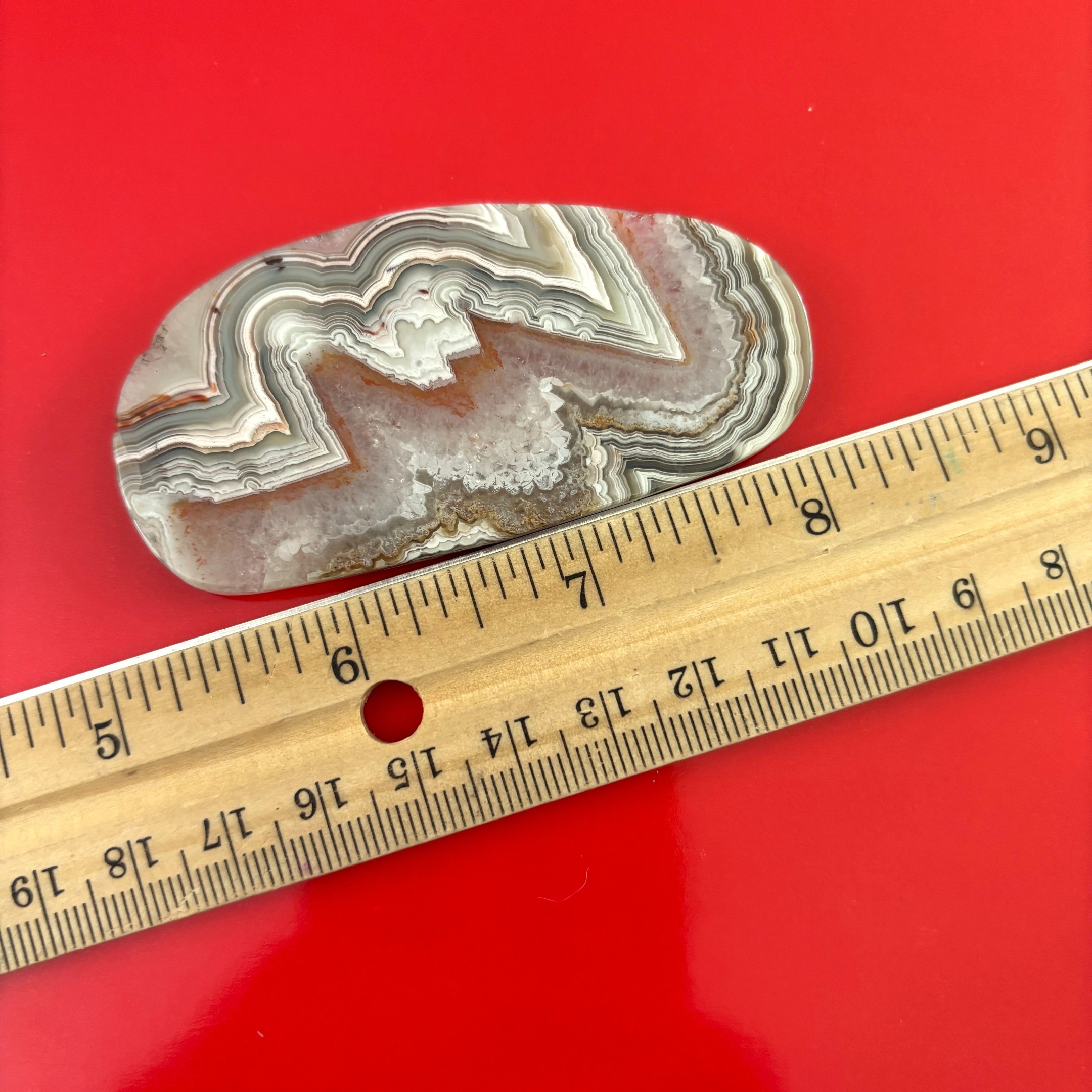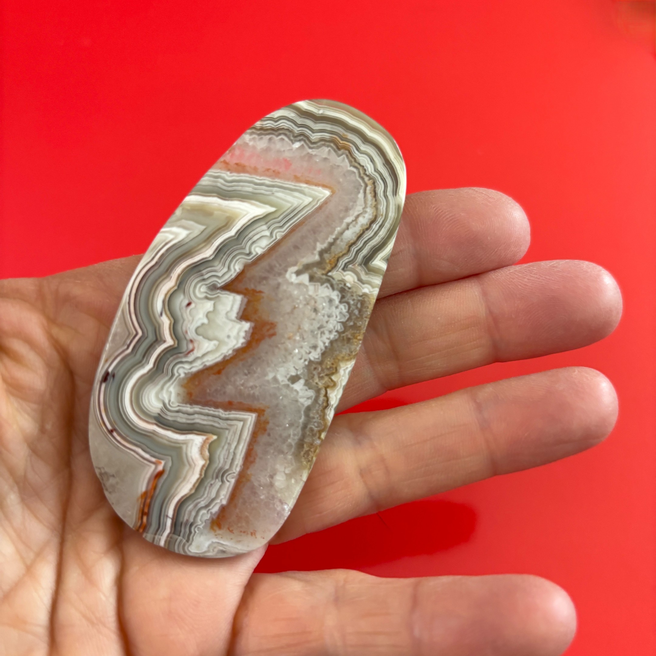Polished crazy lace agate slice with bold and beautiful banding from Chihuahua, Mexico.